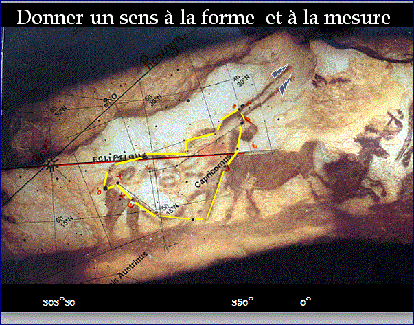 ---Puisque le Soleil pénétrait dans la grotte, les Paléolithiques, qui à l’intérieur de celle-ci regardaient le soleil se coucher, même s’ils avaient voulu représenter cette constellation sur la paroi avec un azimut identique à celui qu’elle avait dans le ciel à ce moment-là, n’auraient pas pu le faire puisque celle-ci se trouvait dans le vide de l’ouverture de l’entrée. Seul, le Soleil éblouissant était visible tant qu’il n’était pas rentré sous la terre.