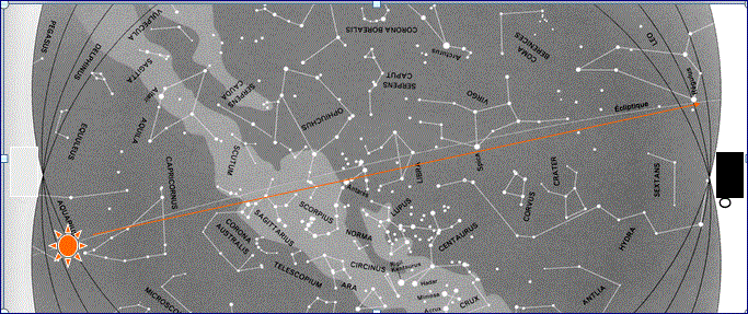 ---Ce tableau vous sera utile si vous utilisez par exemple le programme Stellarium. Si vous souhaitiez voir le ciel de l’été et que vous mettiez le 21 juin comme date, vous pourriez constater avec le tableau ci-dessus que vous obtiendriez le ciel de l’hiver !